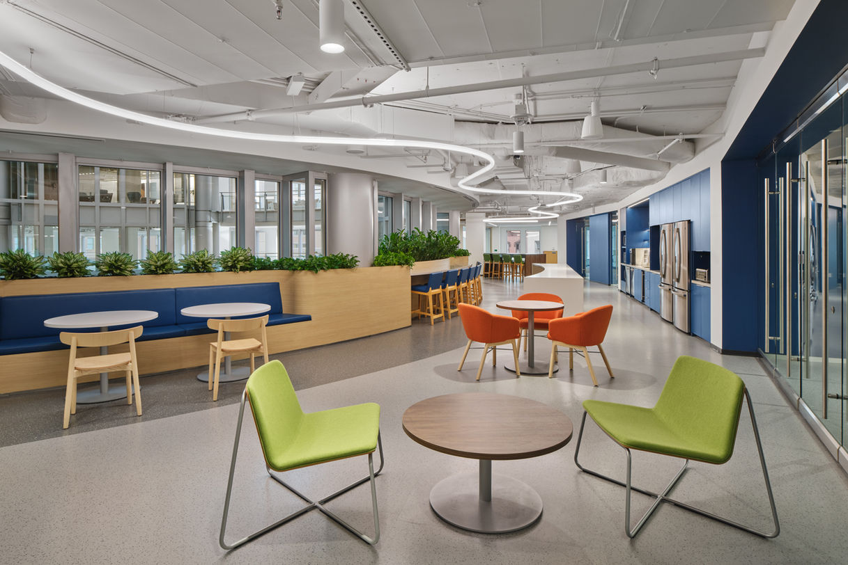 “Material vetting is very stringent at Perkins and Will,” said Kate Currie, Sr. Interior Designer +Senior Associate, Perkins and Will. “Finishes were selected with high recycled content, and we have a precautionary list to weed out any health adverse compounds. We look at sustainability through multiple lenses.”