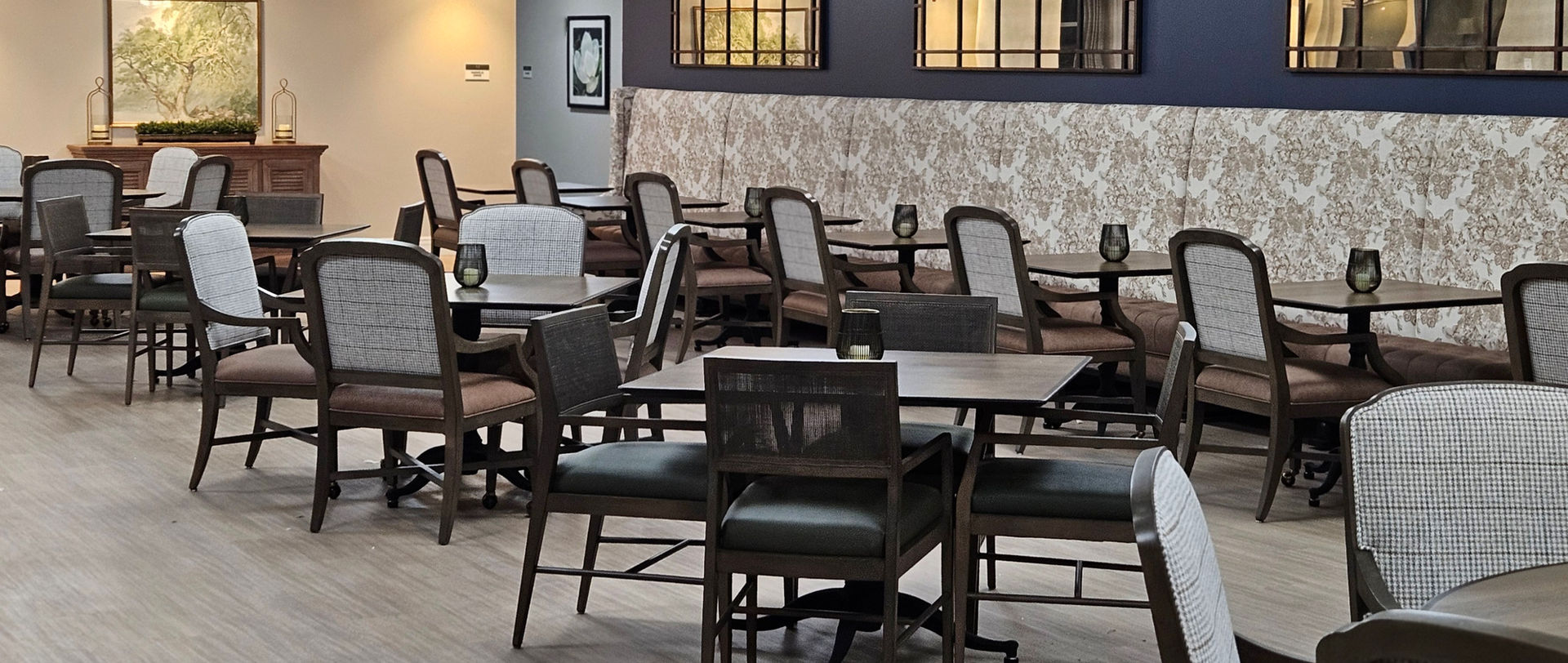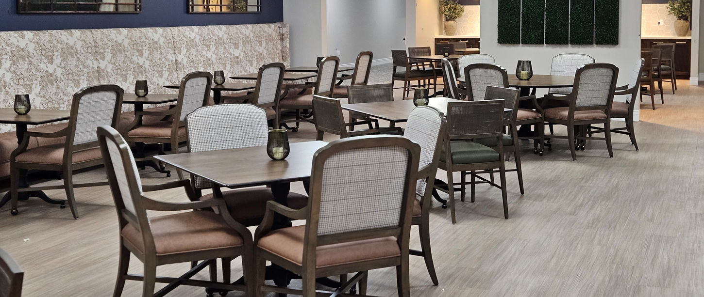 Our Senior Living team played a crucial role, expertly selecting and procuring furniture, art, and accessories while collaborating with installation teams to ensure accurate placement and finishing touches. By integrating local elements into the design, the Main Lobby and razorback room beautifully reflect the community's spirit and enhance the collective experience.